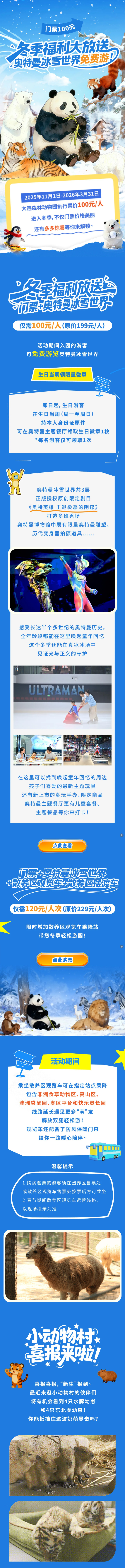 【動物園門票100元】冬季福利大放送,奧特曼冰雪世界免費(fèi)游!