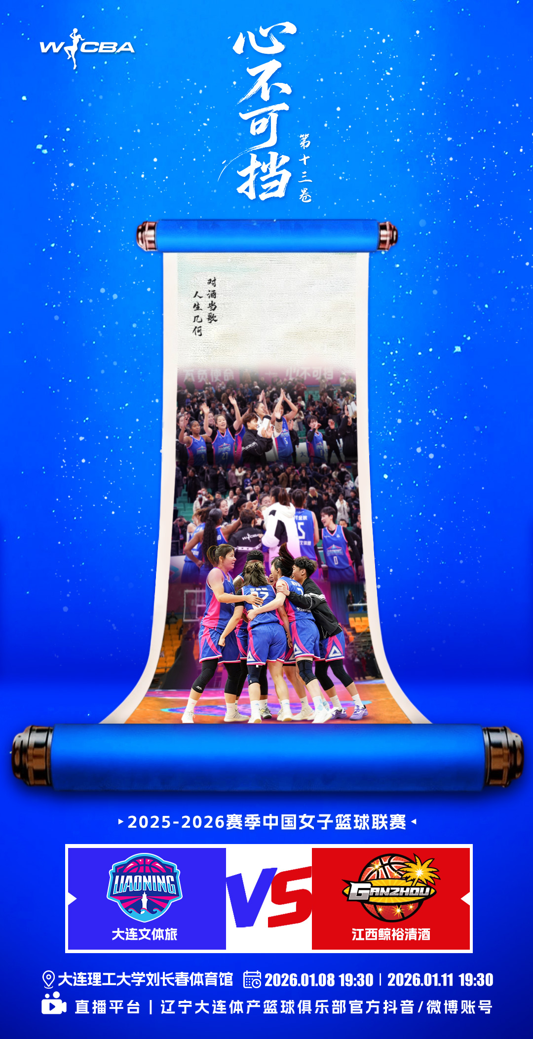新年新勢,銳不可當;主場新章,力不可阻。2026年的首個主場戰(zhàn)役,即將在大連理工大學劉長春體育館熾熱開啟。我們迎來的不僅是一場比賽,更是一次全新的出發(fā)——以信念為起點,以拼搏為步伐,以團隊為力量,開啟屬于大連文體旅女籃的嶄新篇章。1月8日19:30,官方抖音、微博賬號全程直播。這一次,我們共同見證:新程已啟,其勢難擋!