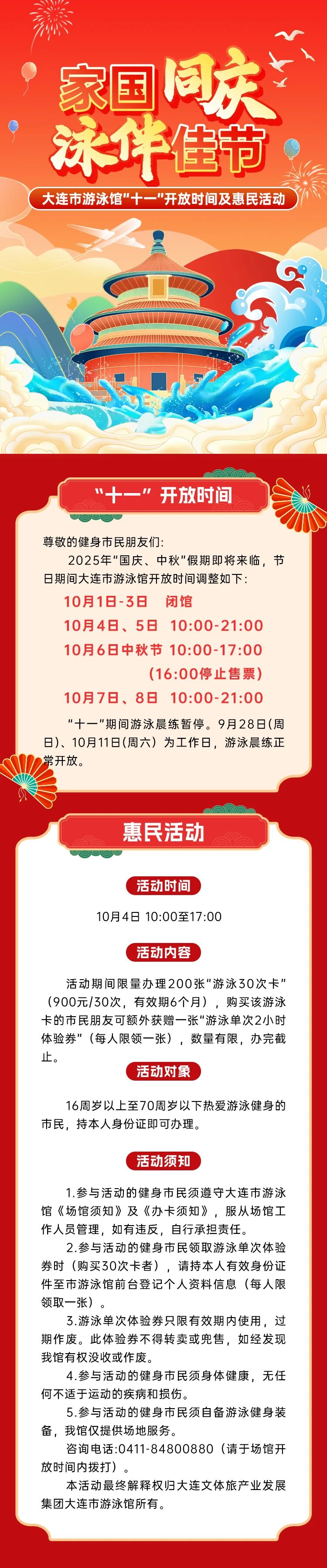 大連市游泳館“十一”開(kāi)放時(shí)間及惠民活動(dòng)安排