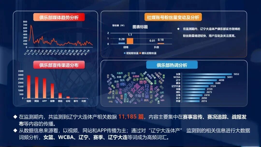 2024-2025賽季W(wǎng)CBA聯(lián)賽頻頻登上各大自媒體平臺熱搜,累計登上熱搜達217次,同比增長48%。新華社、人民日報、央視等權(quán)威媒體深度報道,聯(lián)賽搜索指數(shù)日均近5000次,資訊指數(shù)突破11萬。俱樂部在全網(wǎng)監(jiān)測數(shù)據(jù)達11,185篇,內(nèi)容覆蓋賽事宣傳、賽況追蹤、戰(zhàn)報發(fā)布等,彰顯強大傳播力與粉絲粘性。