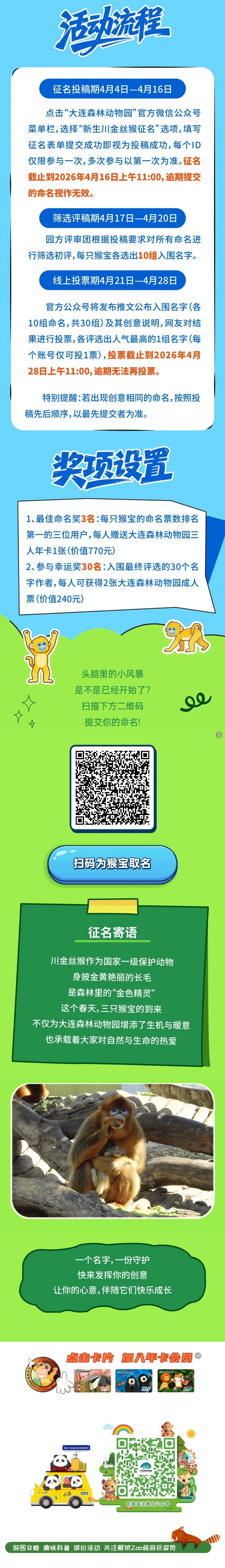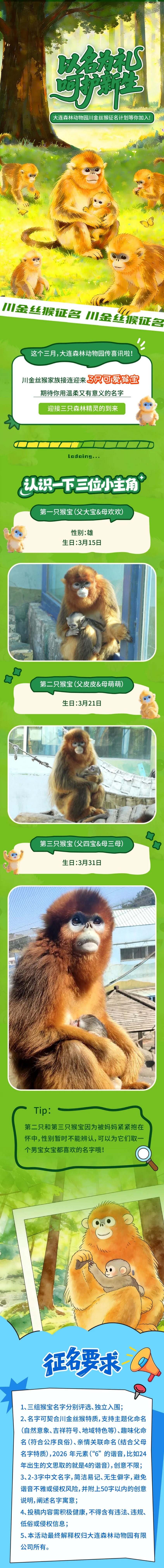 以名為禮,呵護(hù)新生,大連森林動(dòng)物園川金絲猴征名計(jì)劃等你加入!