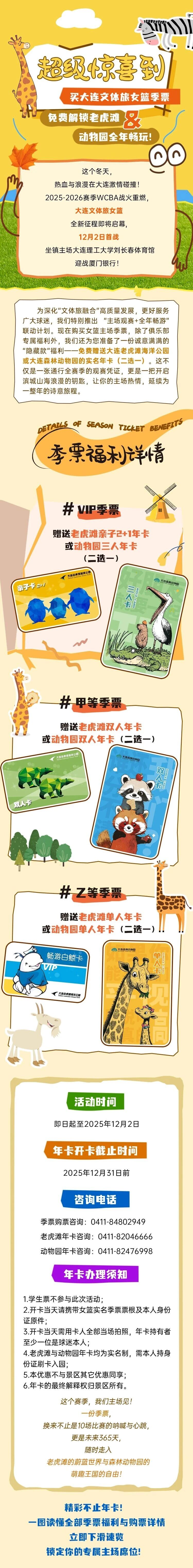 大連文體旅女籃季票重磅福利來襲,老虎灘&動物園免費暢玩一整年!