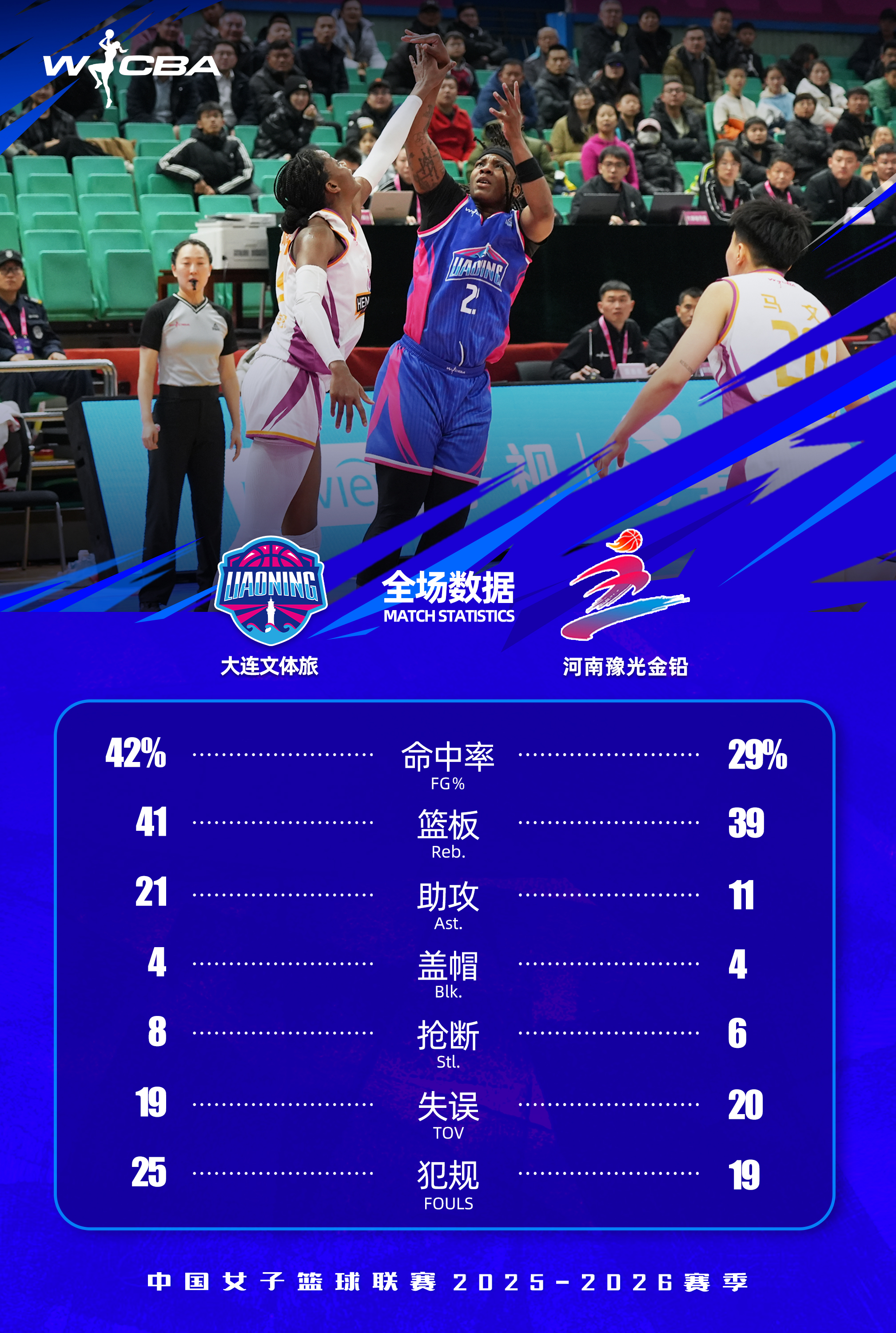 北京時(shí)間2025年12月15日19時(shí)30分,2025-26賽季W(wǎng)CBA常規(guī)賽第五輪展開爭(zhēng)奪,大連文體旅女籃坐鎮(zhèn)主場(chǎng)迎戰(zhàn)河南豫光金鉛女籃。全場(chǎng)比賽,大連文體旅女籃內(nèi)外線多點(diǎn)開花,始終掌控比賽主動(dòng),最終以69:59戰(zhàn)勝對(duì)手,取得新賽季開局五連勝!