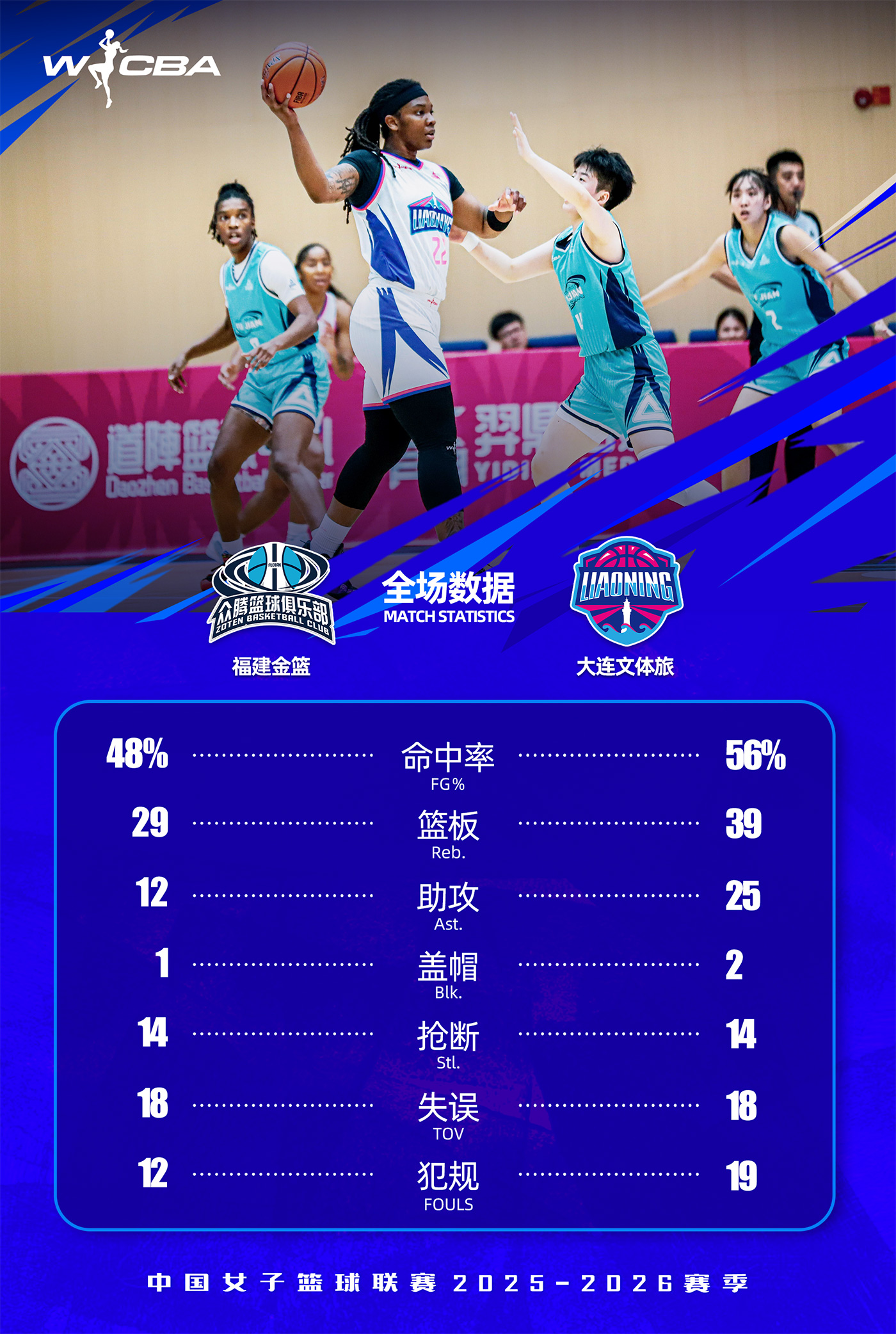 北京時(shí)間2025年12月29日19時(shí)30分,2025-26賽季W(wǎng)CBA常規(guī)賽第十輪展開(kāi)較量,大連文體旅女籃客場(chǎng)對(duì)陣福建金籃女籃。全場(chǎng)比賽,大連文體旅女籃多點(diǎn)開(kāi)花,始終掌握?qǐng)錾现鲃?dòng),最終98:82戰(zhàn)勝福建金籃女籃。