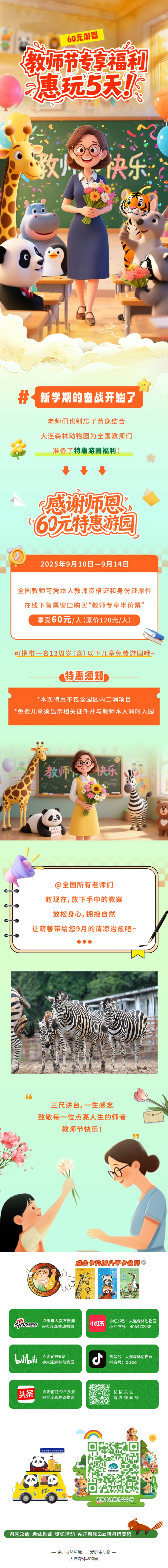 60元游動(dòng)物園丨教師節(jié)專享福利,惠玩5天!