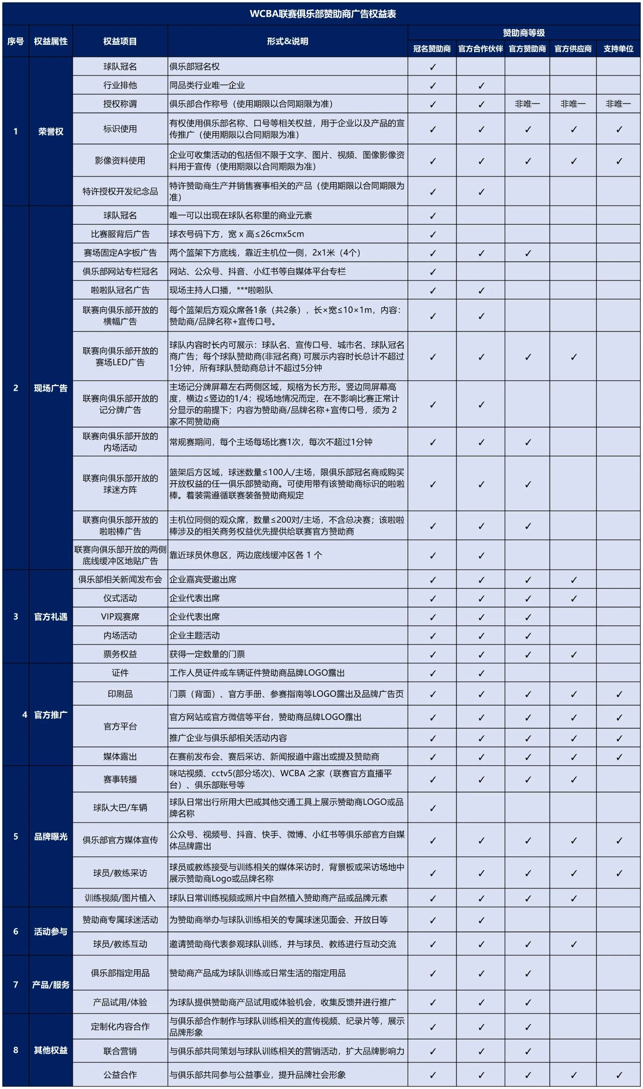 /WCBA聯(lián)賽遼寧女籃贊助商權(quán)益表/