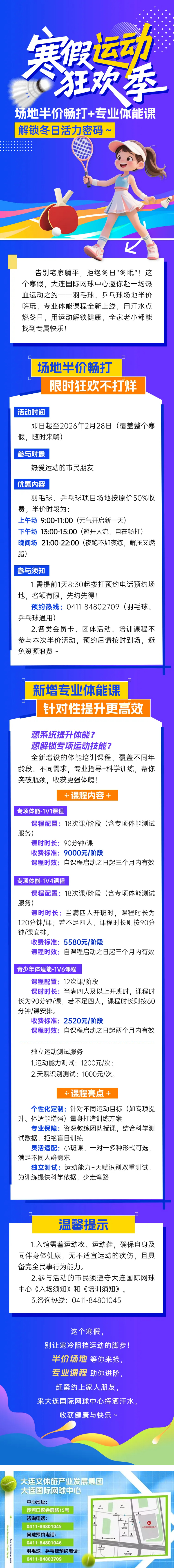 大連國際網(wǎng)球中心 | 場(chǎng)地半價(jià)暢打+專業(yè)體能課,解鎖寒假冬日活力密碼~